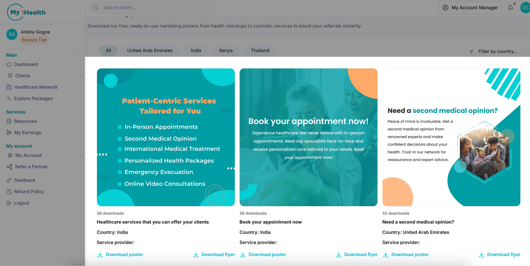 My 1Health is a healthcare facilitation platform that connects patients to trusted hospitals and wellness clinics globally. It operates in both B2C and B2B spaces, serving individual patients as well as medical travel agents and facilitators. The platform supports treatments ranging from wellness check-ups to complex surgeries such as organ transplants.