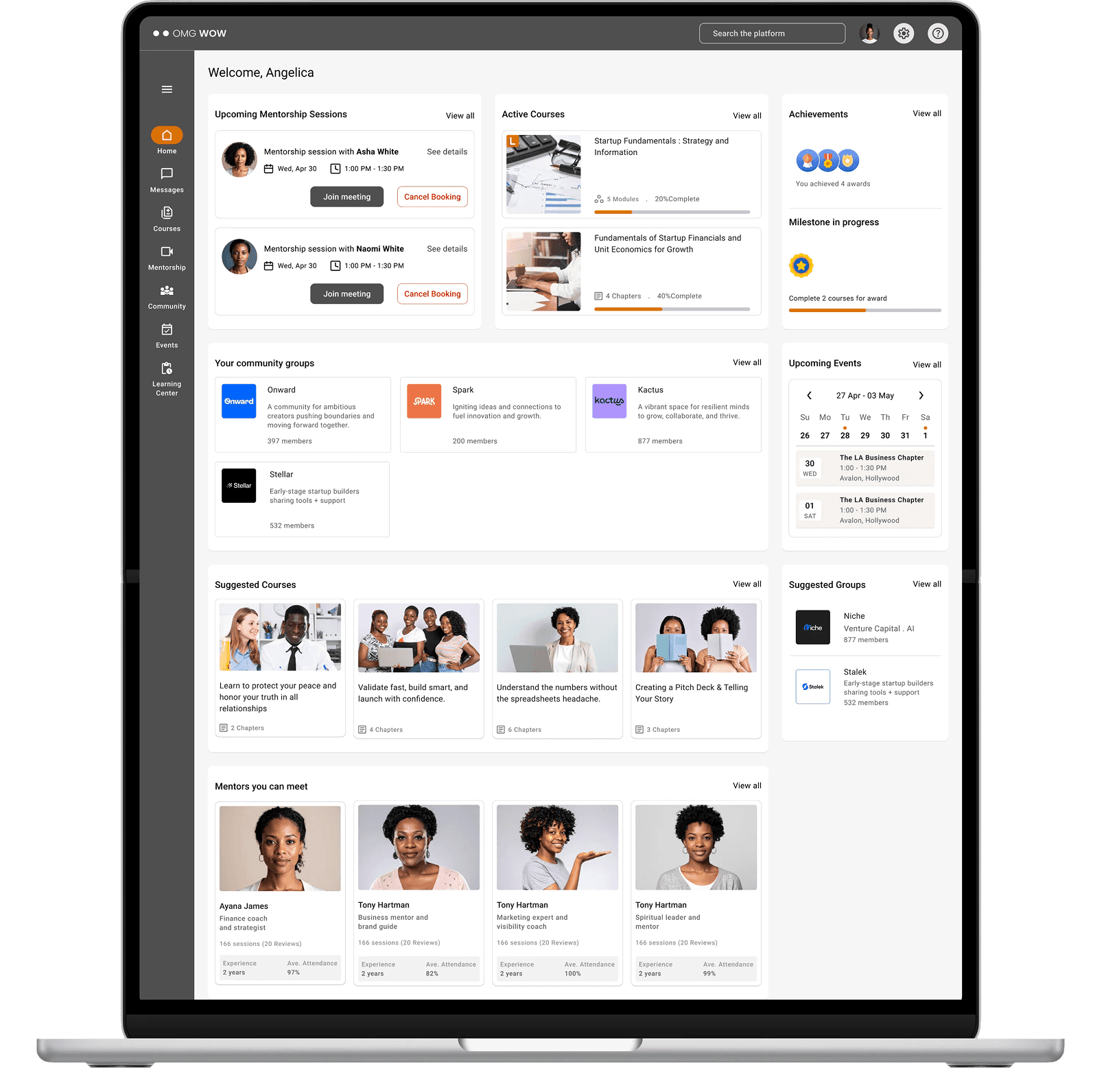 Redesigned the website to clearly communicate mission and value, then built a dashboard from scratch to support member learning, mentorship access, and community connection.